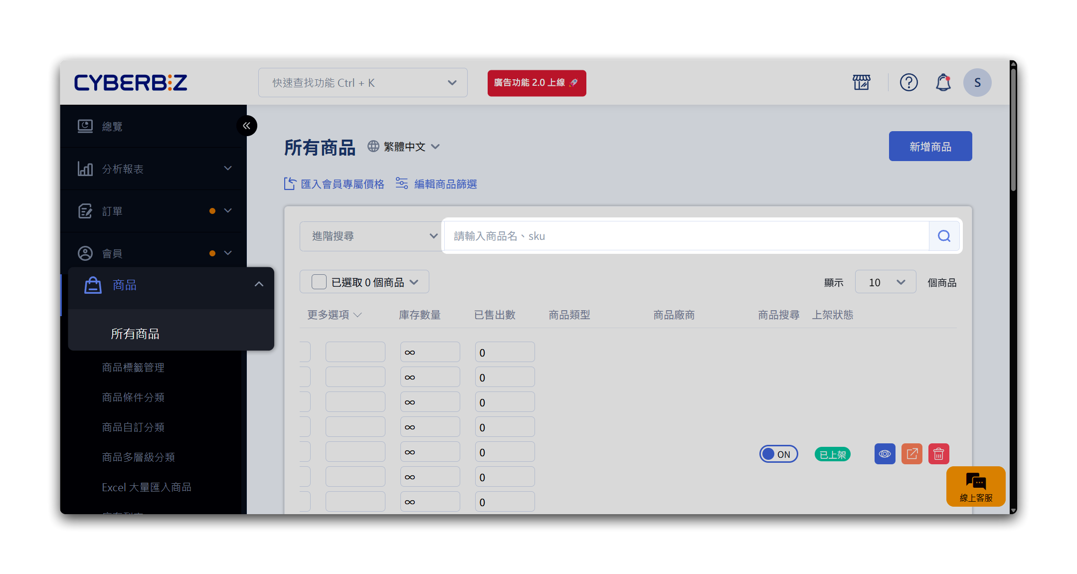 - 登入 CYBERBIZ 電商後台,前往 商品 → 所有商品。