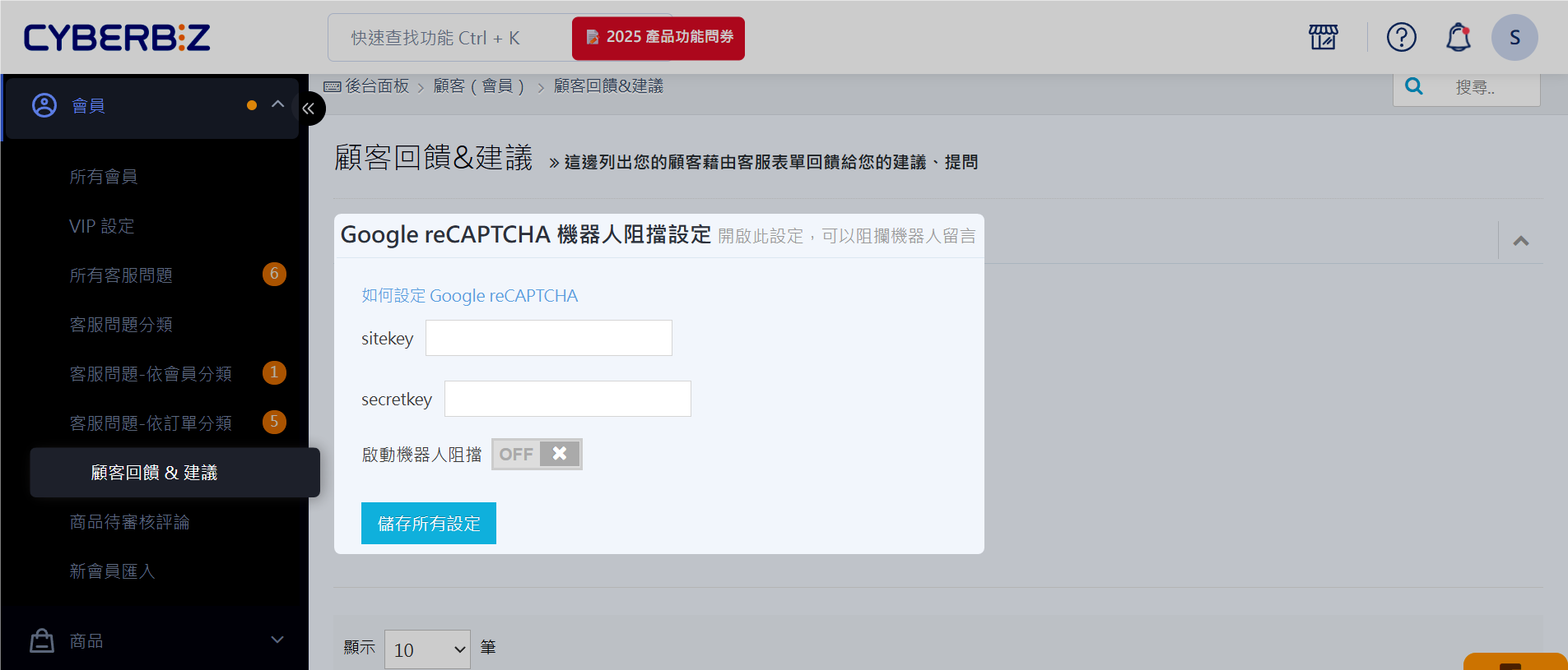 - Log in to the CYBERBIZ e-commerce backend, go to "Members" → "Customer Feedback & Suggestions".