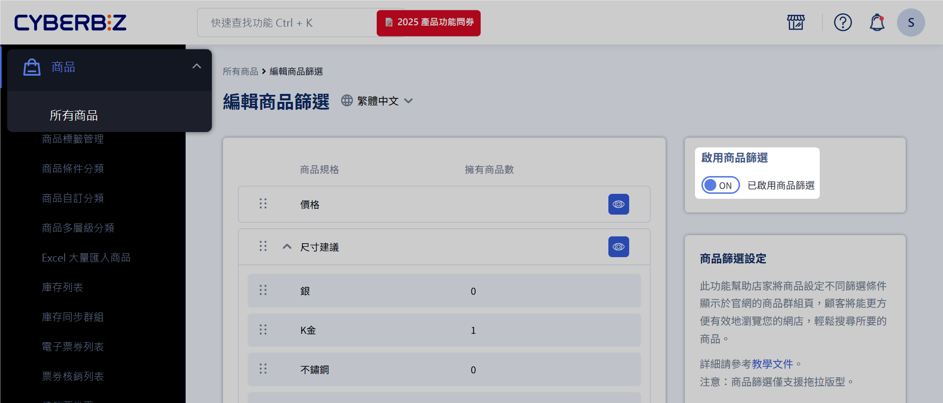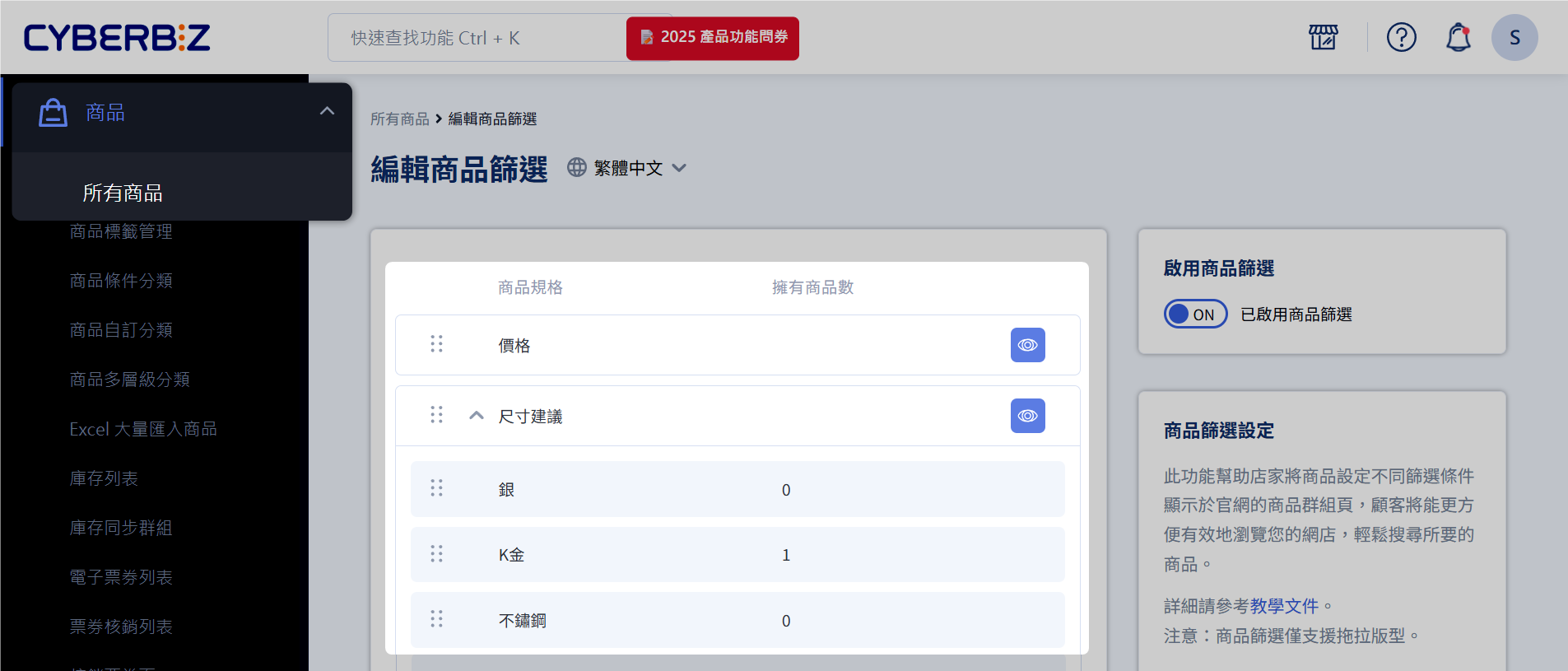 設定商品篩選器(商家端)¶