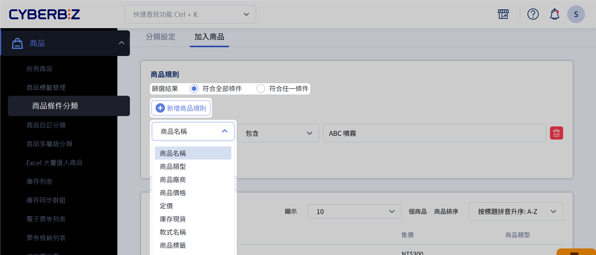 - 多層級條件篩選:支援設定多層篩選與搜尋條件,方便精準管理複雜的商品結構。