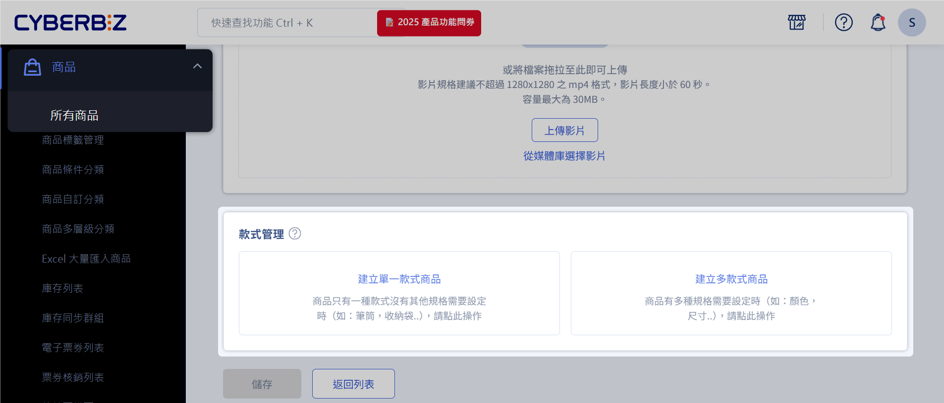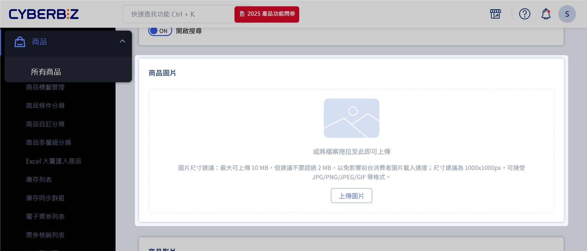 - 登入 CYBERBIZ 電商後台,前往 商品 → 所有商品。